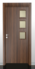 Az ajtó pánt oldalán három négyzet alakú üveget helyeztünk el, sorban egymás alatt. Az üveglapok elhelyezkedésének köszönhetően egy modernebb, dizájnosabb darabot kapunk.